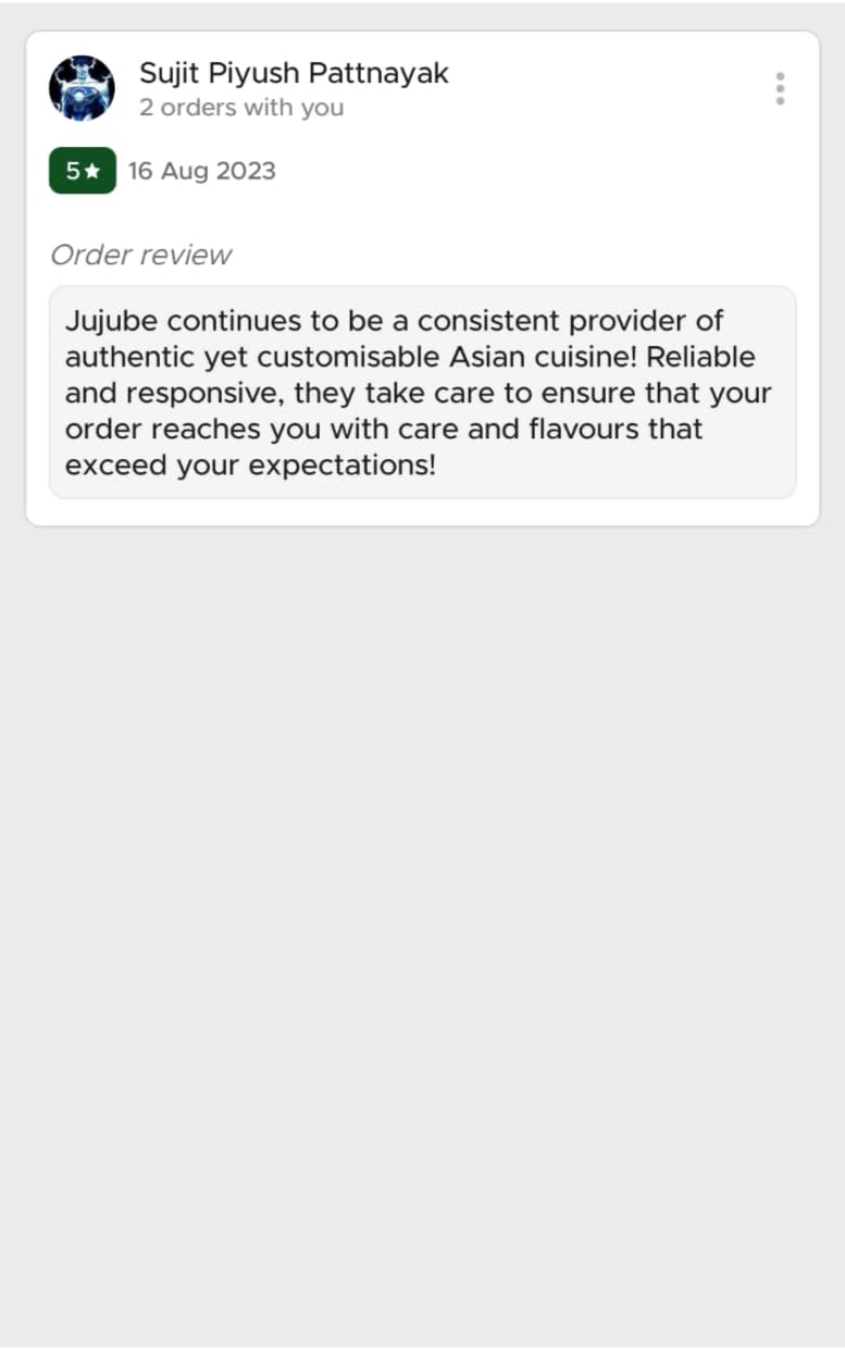 Jujube’s Asian Cookhouse is an ecstatic expression of refined culinary experience for Pan Asian cuisine lovers. Our food is an emotion and an extraordinary utterance of love. Ordering food online is common, but Jujube is here to deliver an uncommon episode of scrumptious savories through its cloud kitchens.